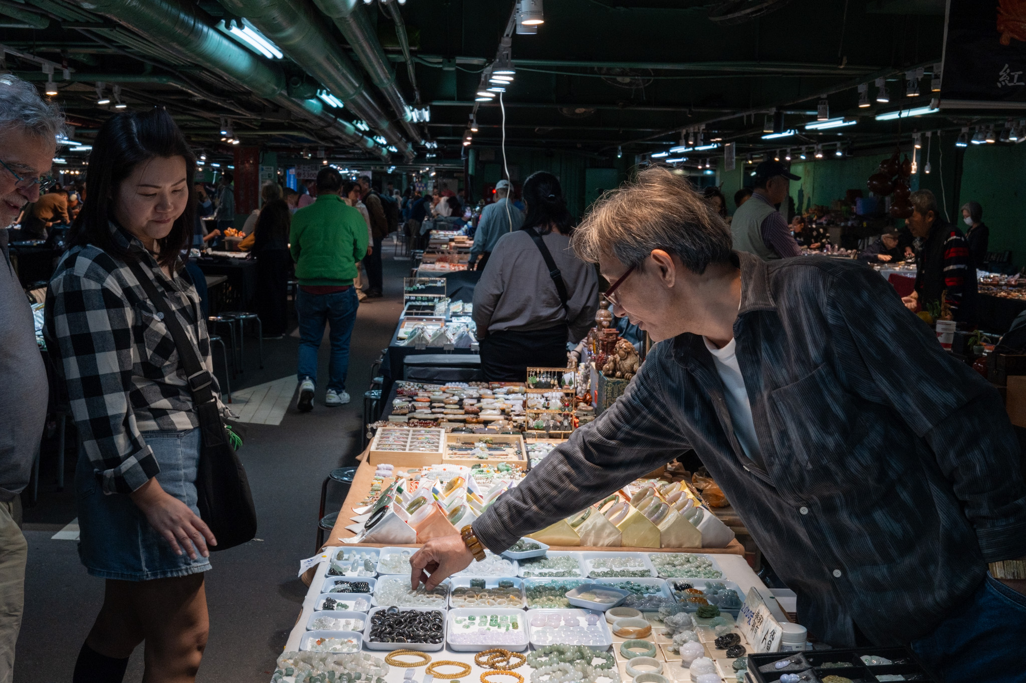 I watched an elderly woman choosing a pendant shaped like a small cabbage—a symbol of wealth—and the seller explaining the different hues of green, from the almost