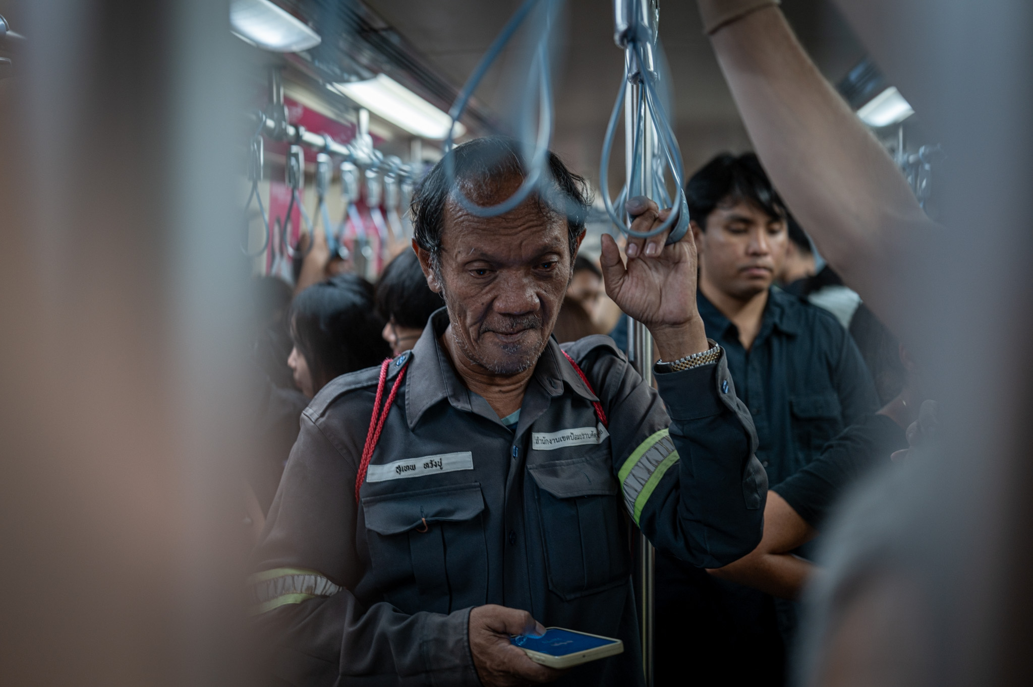There is a height at which Bangkok begins to make sense. It is not the height of observation decks or rooftop bars, nor the polished perspective of hotel lobbies. It is roughly one meter above the ground: the height of a bowl held in both hands, of a trolley wheel, of a face bent slightly forward while working. Walking height. Human height.