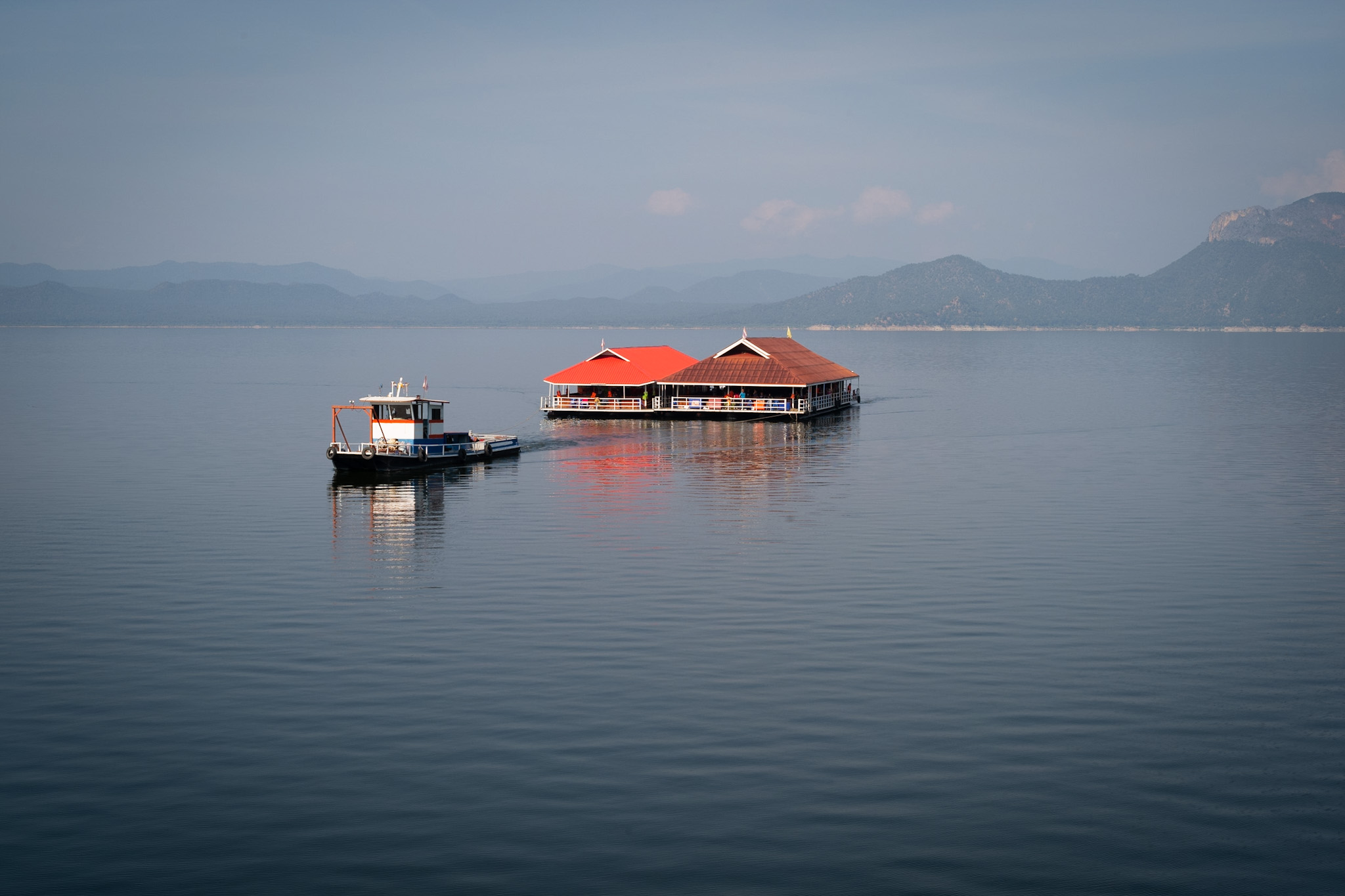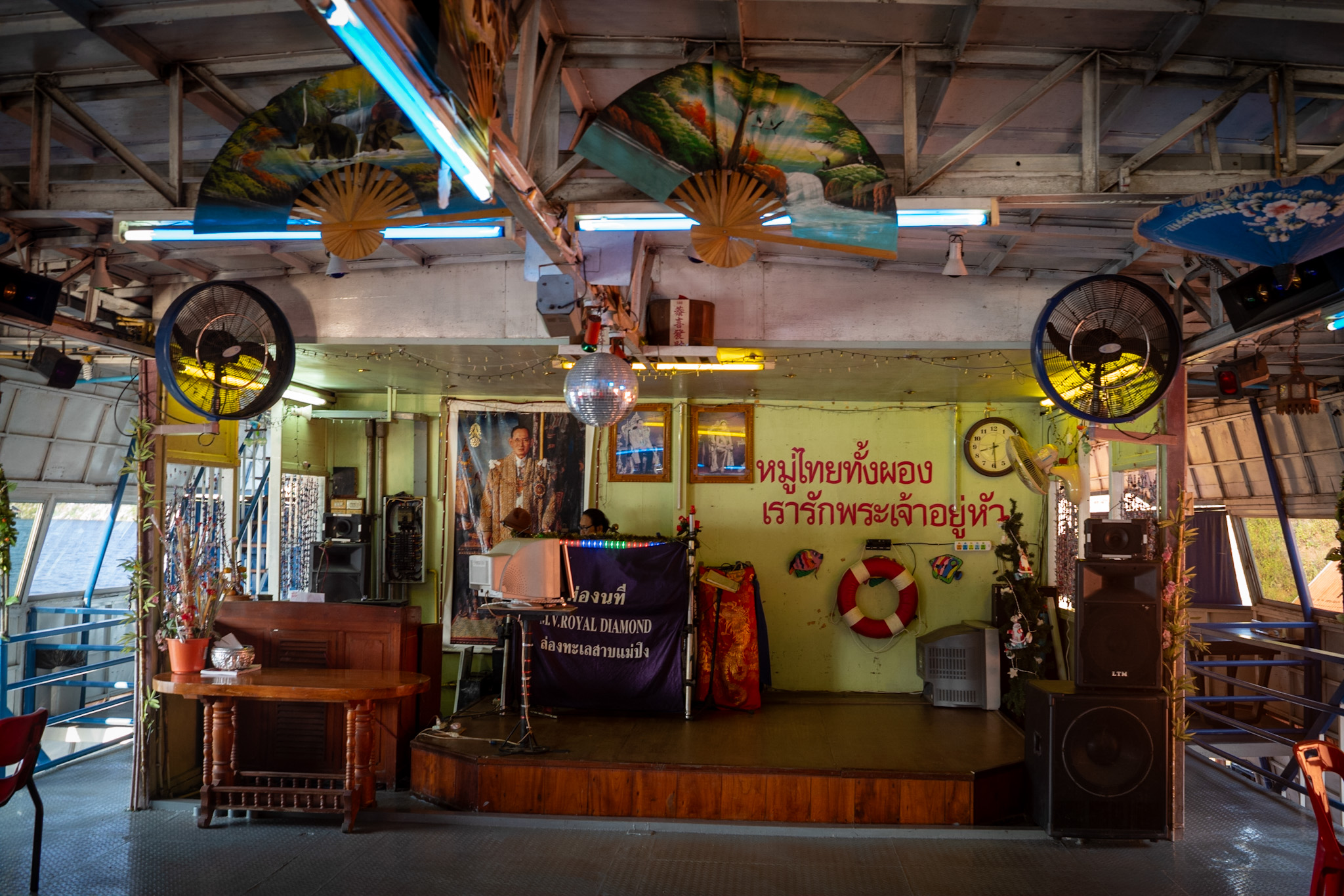 karaokesoundtrack. The singing would pause only when, along the riverbanks, a temple called passengers to a brief moment of faith — and to a break from the steady consumption of beer and other